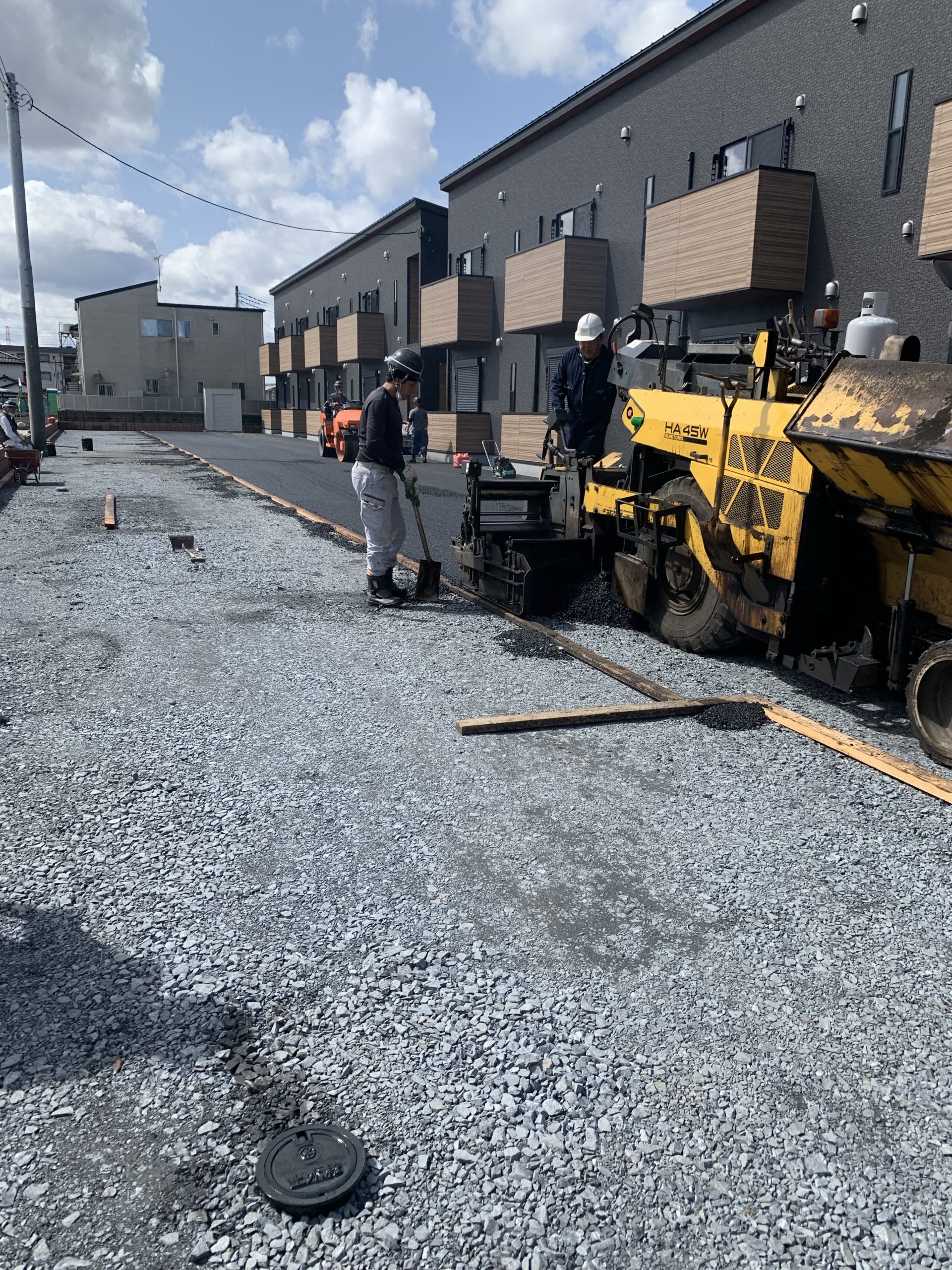 茨城県水戸市でアパートの舗装工事を行いました。 フェニッシャーという建設機械で平らに均していきます。 駐車場の白線も引き施工完了し...